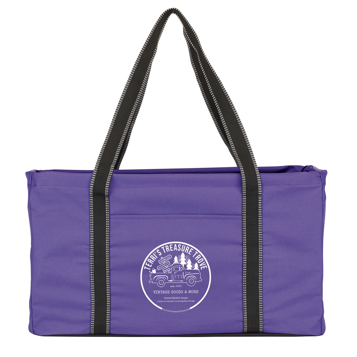 Ultimate Utility Tote. Collapsible. Durable. Customizable. Your brand's new everyday essential. Promote your business with one of our most popular and versatile bags—the Ultimate Utility Tote. Built for strength, stability, and style, this tote is designed to carry it all, from groceries and gear to event supplies and everyday essentials. Key features: Spacious main compartment with rigid wire rim to keep its shape, Sewn-in hard bottom for added support and structure, two front pockets for quick-access storage of smaller items, collapsible design folds flat for easy storage and transport.Available in vibrant color options to perfectly complement your brand. Whether used for shopping, organizing, or promotional events, this tote puts your logo front and center while offering long-lasting utility your audience will appreciate. Samples, virtual mockups, and product specs available upon request.